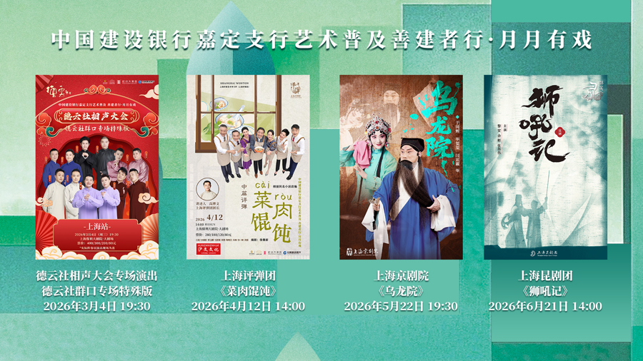 公益系列演出还有上海评弹团《菜肉馄饨》、上海京剧院《乌龙院》、上海昆剧团《狮吼记》,呈现沪上戏曲院团隽永魅力。