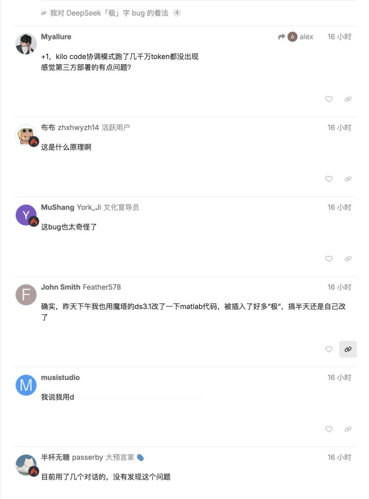 DeepSeek 这次主要是扑街在第三方平台上,问题是最严重的。知乎答主 Pandora 测试了发现,官方 api 的情况好很多。那要做的排查工作就又多了一些。